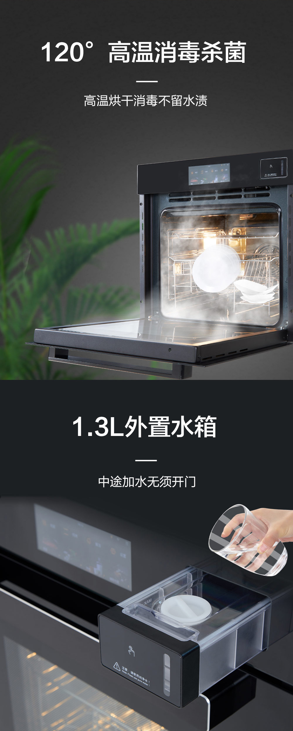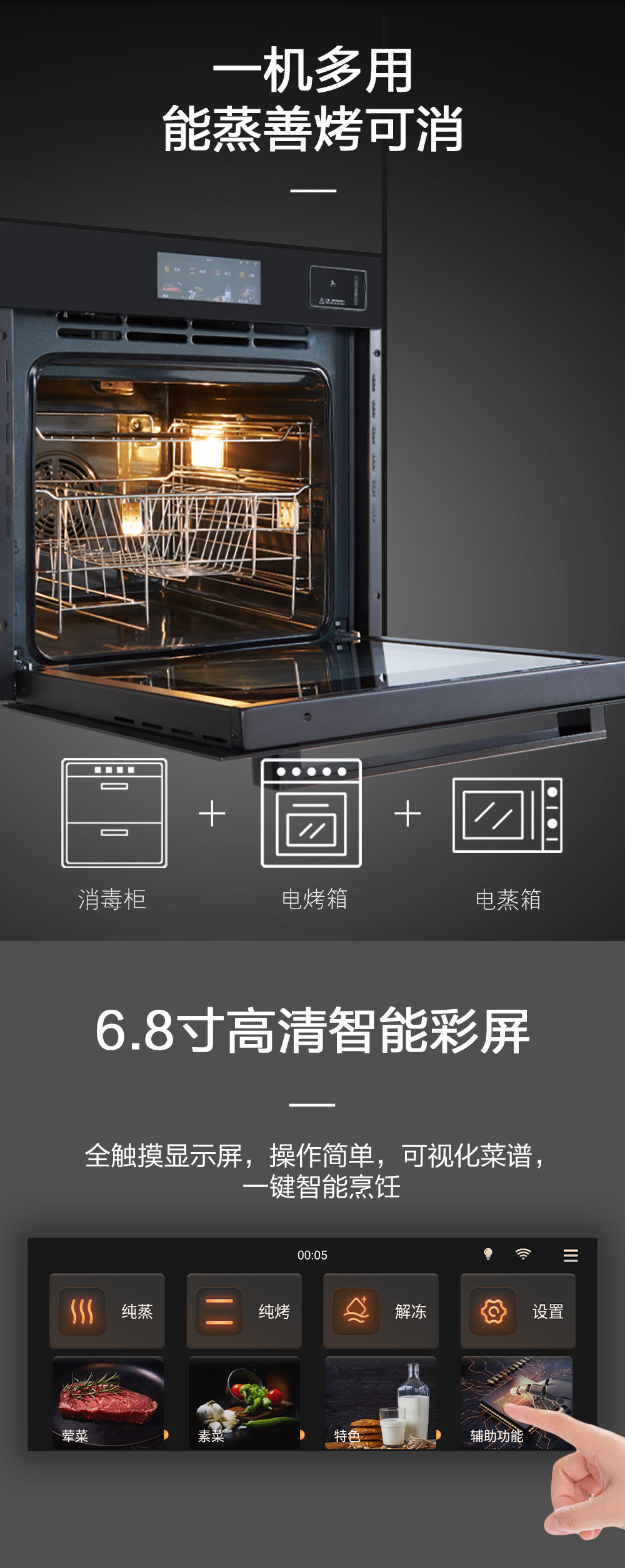 80L大容量;搪瓷內膽;高溫消毒;6 8寸觸控彩屏;