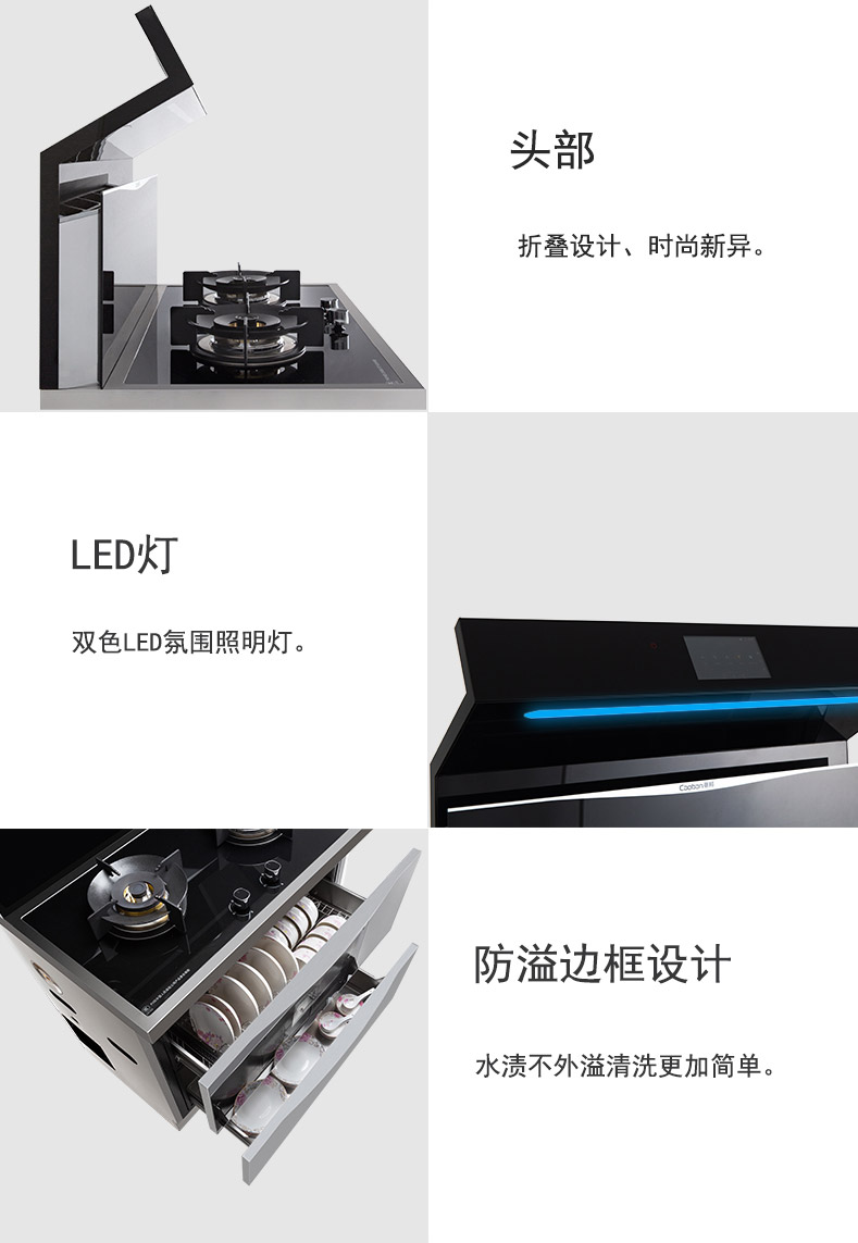 | 電磁爐功率 | 2000W(選配) | 油煙機(jī)噪音 | <71dB |